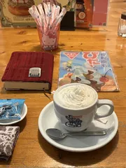 ローブパンを買いに、スタンプカードをつくったコメダへ行きました。コメダ珈琲 稲葉地店明るいドアの向こうに、クリスマスのリースが見えてわくわくしました。なかへ入ると、レジ横のおおきなシロノワールがサンタの帽子をかぶり、ポインセチアがきれいで、もっとうきうきしました。この前シナモロールを見たから、ハロー