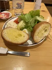 サラダ🥗バケット🌸 今日は、ブラックサンダーシロノワールミニも食べる予定だったので、サラダ🥗バケットにしました🌸キャベツの千切りの代わりにレタス🥬が半端なく、皿に乗ってました🌸久々にたべましたが、凄く美味しかったです♪♪♪