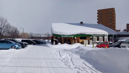 Komeda in BIg Snow 駐車場の雪の中に端然とたたずむコメダであります。